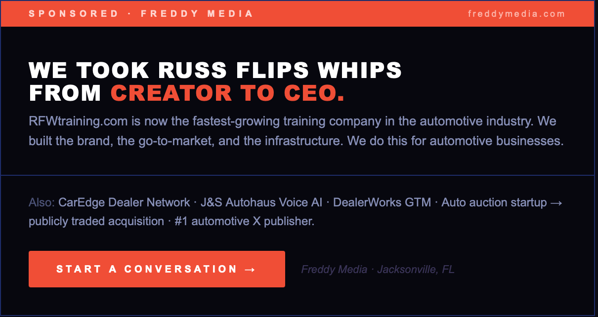 Check out RFW Training so that your company can learn how to do content for your business. Use Code “Freddy” for 15% your first 3 months.